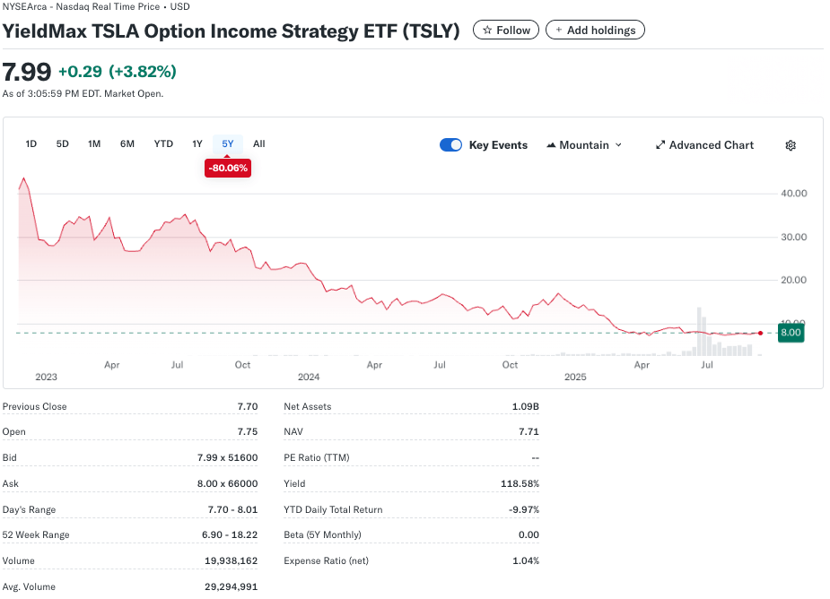 What are the risks – many times, covered call ETFs if not managed properly start eroding your capital, take example of TSLY: